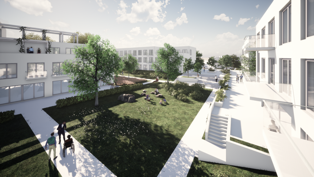 In het stedenbouwkundige plan gaan we uit van een autovrij binnengebied, de kloostertuin, waar vanzelfsprekende ontmoetingen kunnen ontstaan. Het groen hier is niet alleen kijkgroen, maar ook bedoeld als locatie voor buitenactiviteiten en om hittestress tegen te gaan.