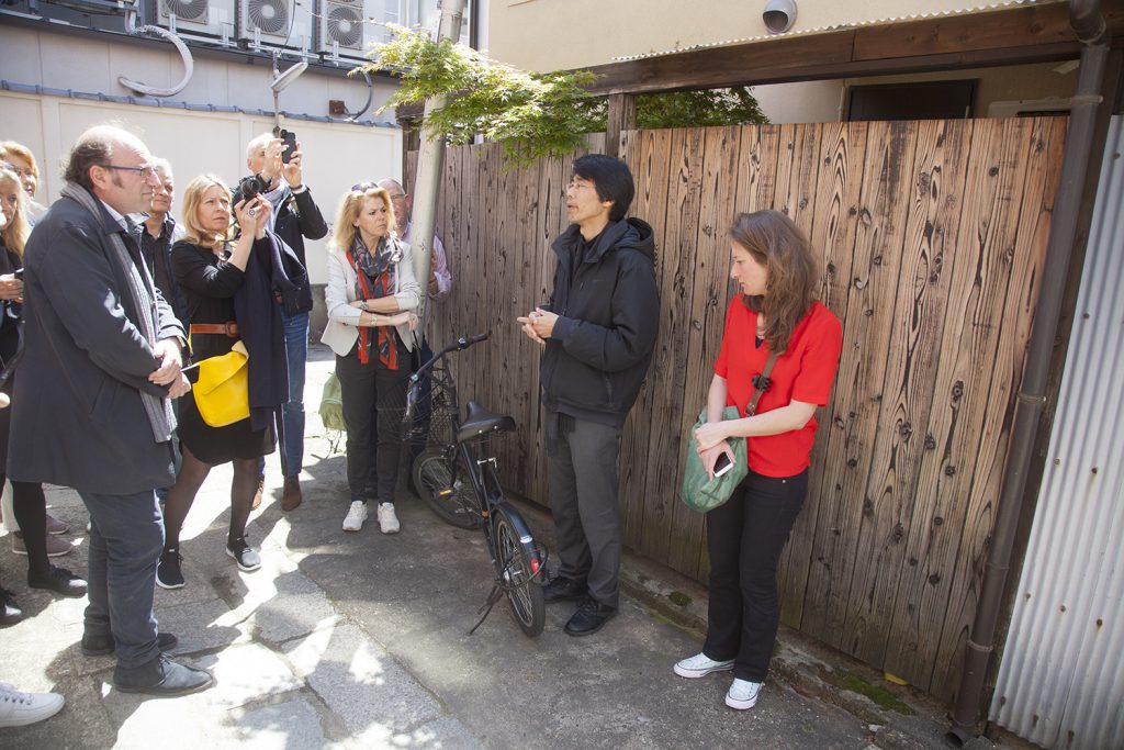 Tijdens de door Beyond Now georganiseerde studiereis naar Japan brachten we ook een bezoek aan het Kizunaya Building, een ontwerp van Alphaville Architects uit Kyoto. Kentaro Tagekuchi, één van de partners van het bureau, nam ons mee in hun denkwijze en het ontwerpproces dat in zeer nauwe samenwerking met de pandeigenaar tot stand is gekomen. Het Kizunaya Building, dat een woning combineert met een edelstenenatelier en -winkel, is een prachtig voorbeeld van bouwen op een kleine kavel. Over elke cm2 is nagedacht.