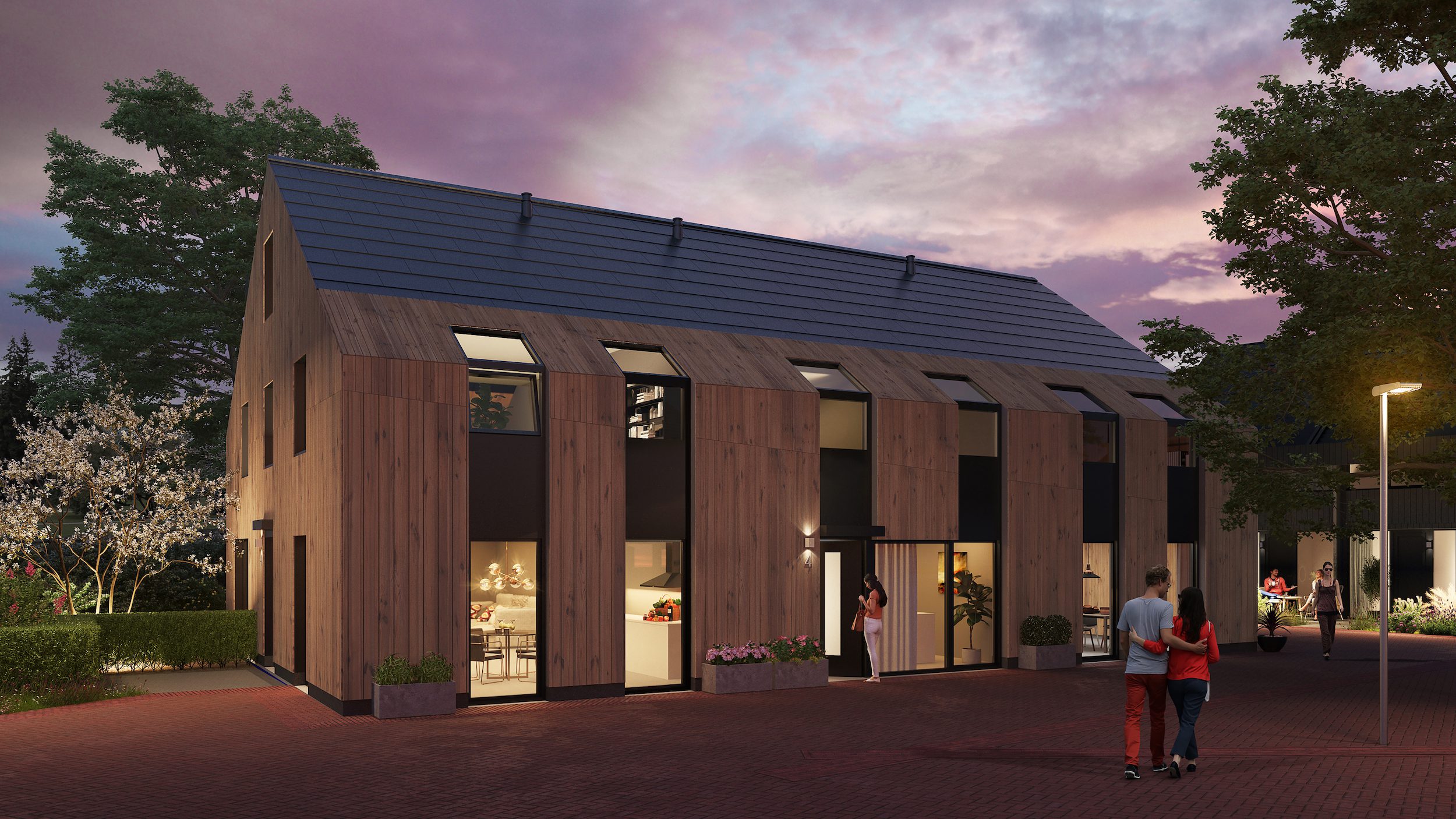 De woningen zijn super duurzaam, met een EPC score van maar liefst -0,5. Bewoners hebben straks dus geen energierekening. De vorm van de gebouwen is geïnspireerd op traditionele Texelse gebouwtypologieën, maar dan op een eigentijdse manier. En met oog voor detail, bijvoorbeeld terug te zien in de verfijnde gevellijnen, gebalanceerde overstekken en fraai in het dak geïntegreerde zonnepanelen.