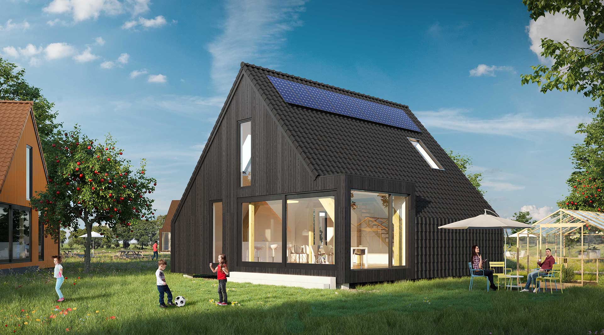 De woningen zijn karakteristieke, moderne, houten in het landschap, met een knipoog naar de architectuur van de eerste nederzettingen in ons land. De kenmerkende hoge puntkap zorgt voor een hele bijzondere ruimtebeleving in huis en biedt allerlei indelingsmogelijkheden. Bijvoorbeeld een woonkamer tot aan de nok. Of een vide in huis.